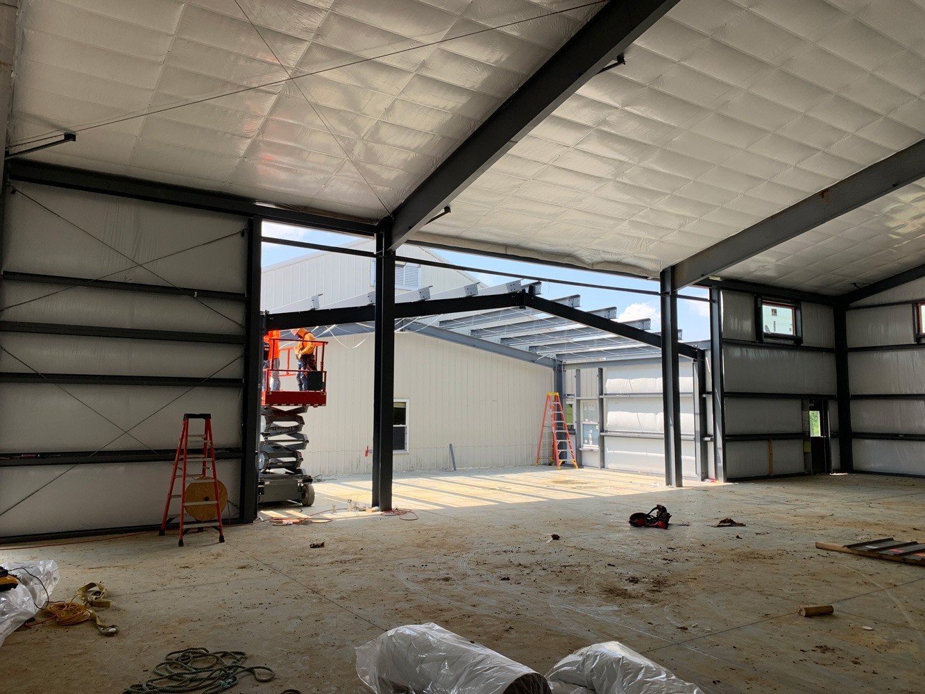 The project presented challenges, as it involved tying into an existing wood-frame building. Koehn Building Systems also assisted with the exterior renovation of the existing structure, including the installation of new roof panels, ensuring a cohesive and functional final result.