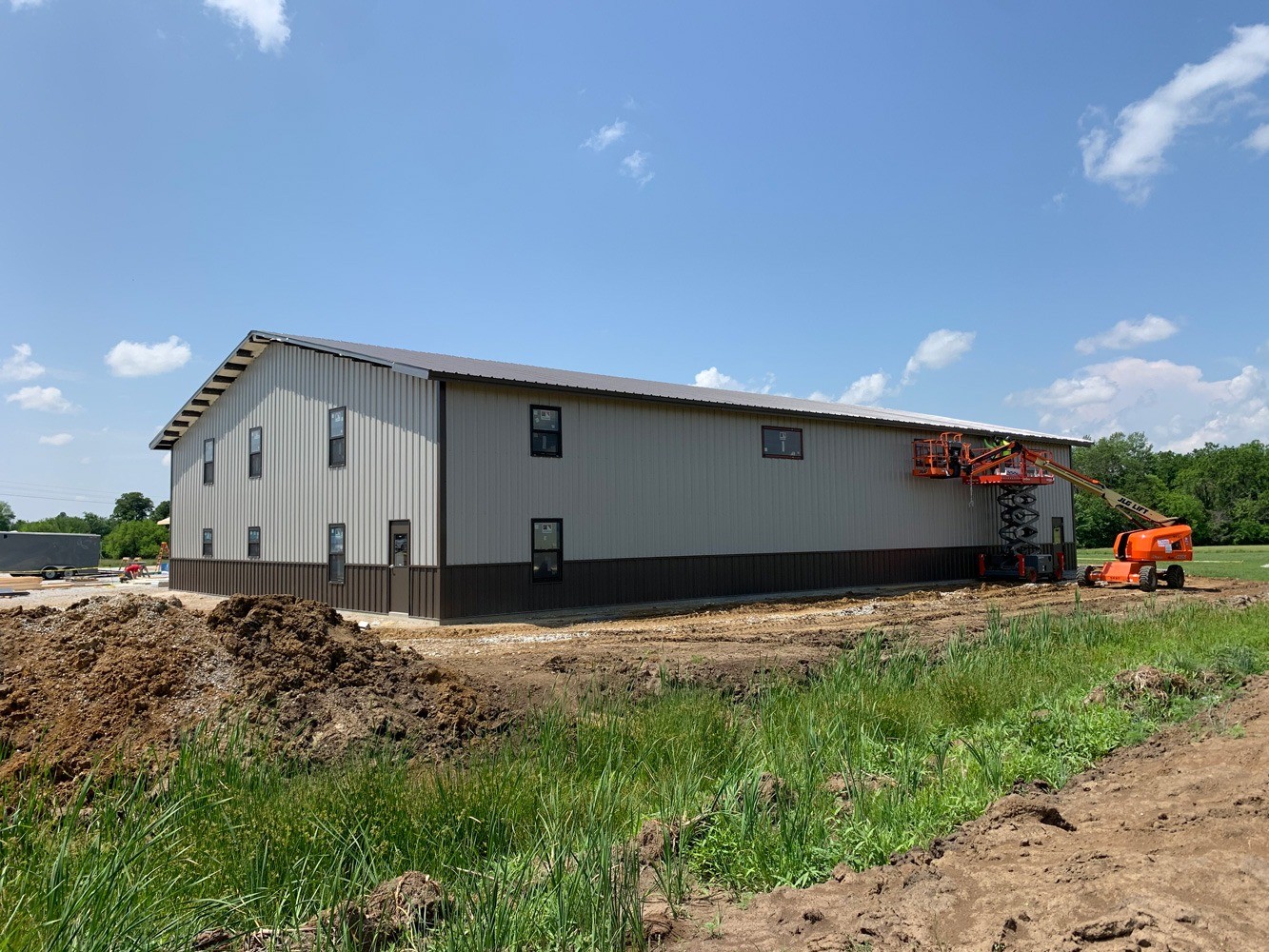 This project was a design-build for a Mennonite private school near Walker, Missouri. It included multiple buildings, with Building A housing a gymnasium, classrooms, and a stage for school programs. Building B served as a tie-in structure between the original building and the gymnasium entry. Careful front-end design was critical, particularly the constant-depth wall columns, flush girt design in the gymnasium, and how the connector building tied in.